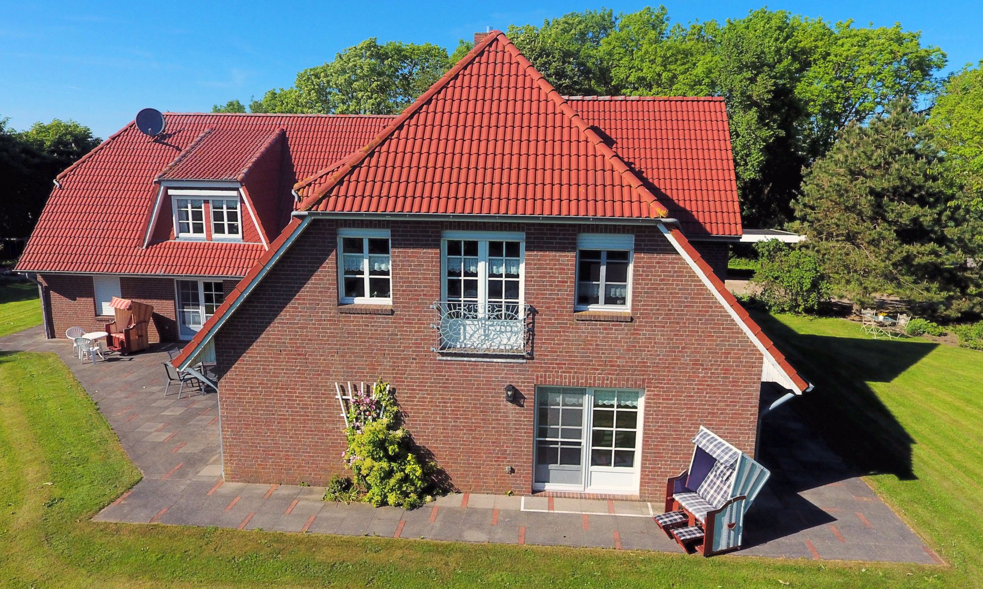 Sie wohnen in einem 1993 erbauten Friesenhaus auf einem großen Grundstück mit schönen Außenanlagen und Spielmöglichkeiten für Kinder in unmittelbarer Nachbarschaft zu unserem voll bewirtschafteten Bauernhof.